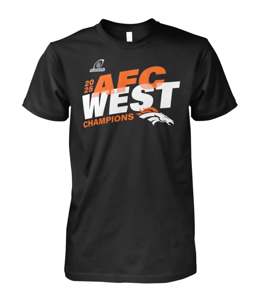 Show your unwavering support for the Broncos with the exclusive “Official Broncos AFC West Division Champions 2025 Shirt”. This must-have piece of fan gear is more than just a shirt—it’s a celebration of your team’s incredible achievement and your dedication as a true Broncos supporter. Crafted from premium, breathable fabric, the Broncos AFC West Division Champions 2025 Shirt offers all-day comfort whether you’re cheering in the stands or representing your team around town. The bold championship graphics and official team colors ensure you stand out with pride wherever you go. Don’t miss out on this limited-edition commemorative shirt that marks an unforgettable season. Whether you’re buying it for yourself or gifting it to a fellow fan, the “Broncos AFC West Division Champions 2025 TShirts” is the perfect way to honor this milestone victory and showcase your loyalty all year long. Get yours now before they’re gone! Celebrate the Broncos’ triumphant 2025 season with the “official Denver Football Broncos AFC West Division Champions 2025 Shirt”! This exclusive shirt is more than just apparel—it’s a badge of honor for every dedicated fan. Crafted from high-quality, breathable fabric, it delivers comfort whether you’re cheering in the stands or watching from home. The bold design proudly displays the team’s achievement, making it a standout piece for game days and everyday wear alike. Don’t miss your chance to own a piece of history. The “Denver Football Broncos AFC West Division Champions 2025 T Shirts” is perfect for showing off your team pride and commemorating an unforgettable season. Wear it with confidence and let everyone know you back the champions!