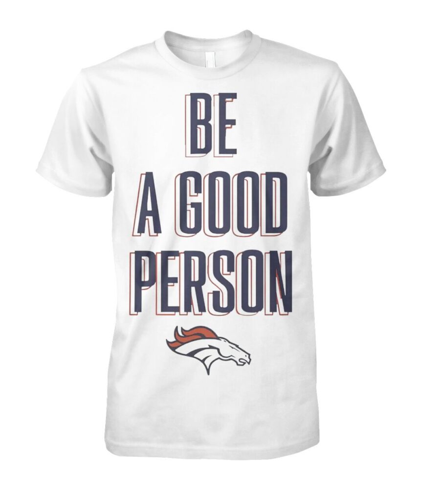 It’s more than football — it’s about how you play the game. The Broncos “Be A Good Person” Shirt blends team pride with a powerful message, reminding fans that integrity, effort, and kindness always win.