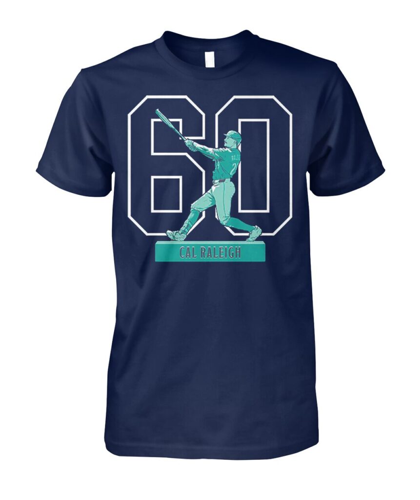 Introducing the “Cal Raleigh Historic 60 Home Run Season Shirt”, a must-have for any true baseball fan and an essential addition to your wardrobe. This exclusive shirt celebrates Cal Raleigh’s remarkable achievement during an unforgettable season, where he not only showcased his incredible talent but also became a symbol of resilience and determination on the field. Don’t miss out on owning a piece of history! The “Cal Raleigh Historic 60 Home Run Season T Shirts” is more than just apparel; it’s a celebration of excellence in baseball. Grab yours today and wear it with pride as you honor an iconic season that will be remembered for years to come!