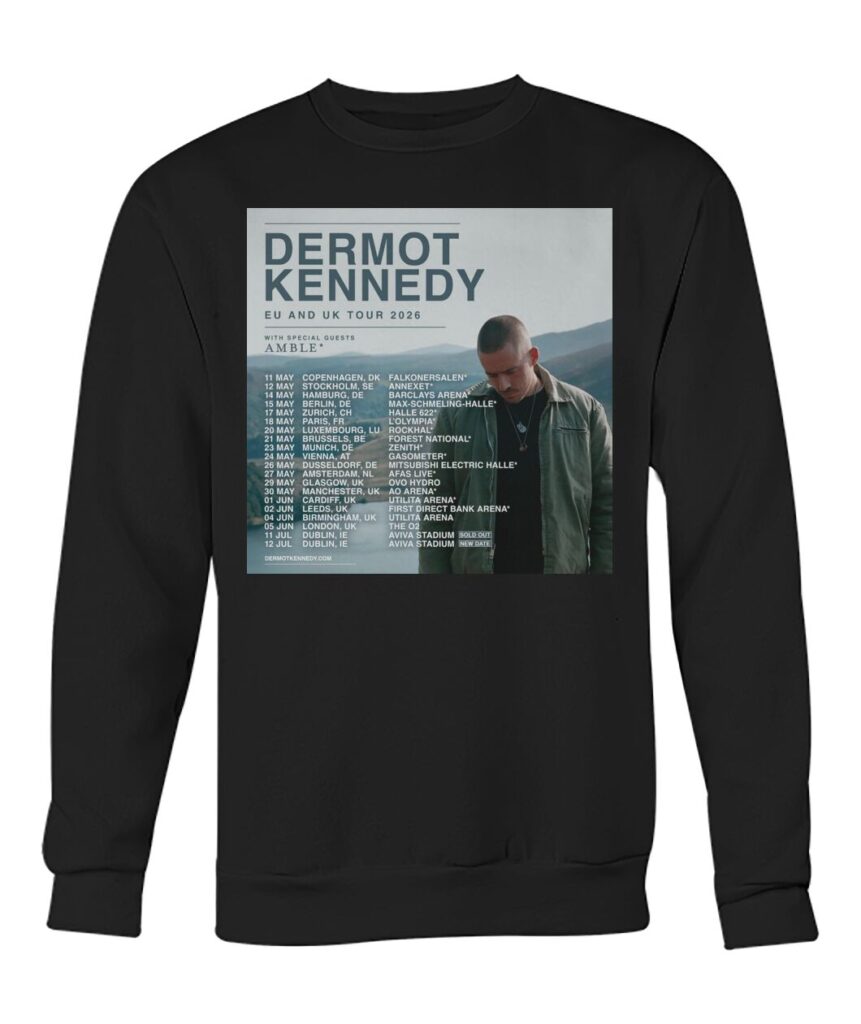 Dermot Kennedy EU and UK Tour 2026 Shirt — premium tour-inspired tee with soft fabric, durable print, and unisex fit, perfect for fans attending the 2026 European and UK shows.