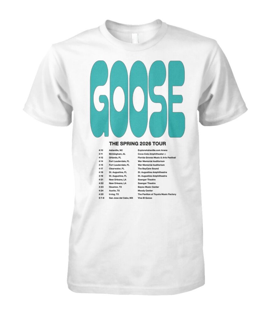Celebrate the groove and good vibes of Goose’s Spring Tour 2026 with this exclusive tour tee. Soft, stylish, and ready for the road, it’s the perfect souvenir for fans who follow the jams from city to city.