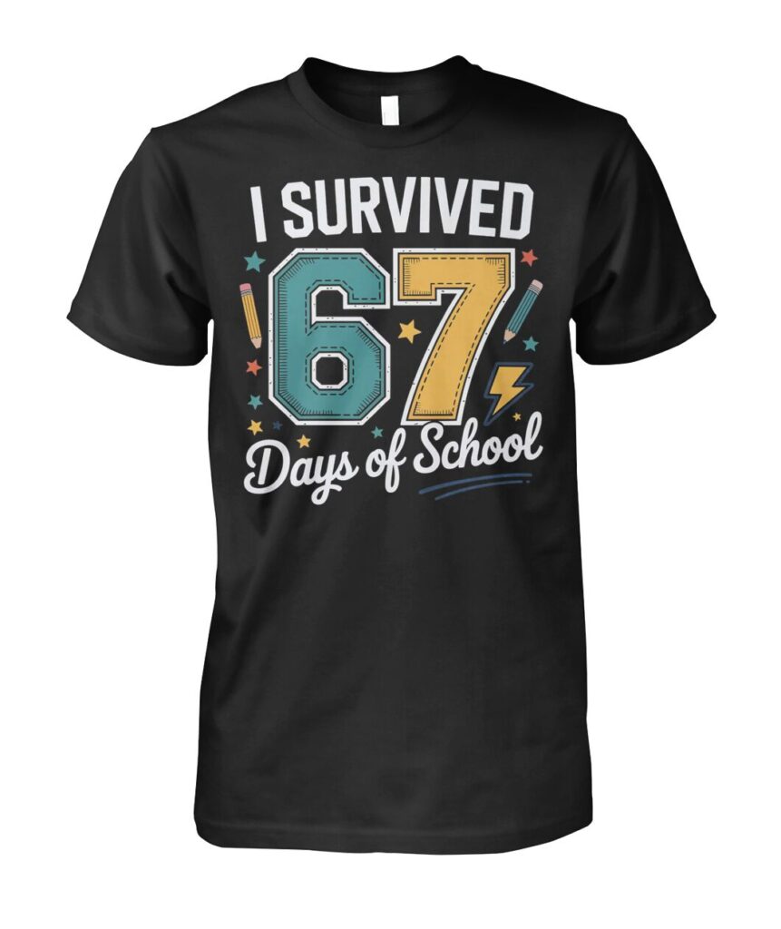 Celebrate your academic endurance with the “I Survived 67 Days of School” Shirt — because making it this far deserves a medal (or at least a comfy tee). Perfect for students, teachers, or anyone counting down the days to summer break.