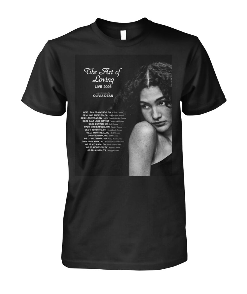 Celebrate the soulful warmth and timeless voice of Olivia Dean with the Art of Loving Tour 2026 Shirt. Designed with soft colors and delicate tour artwork, this tee perfectly captures the joy, tenderness, and emotion of her music. A beautiful keepsake for fans who cherish every lyric.